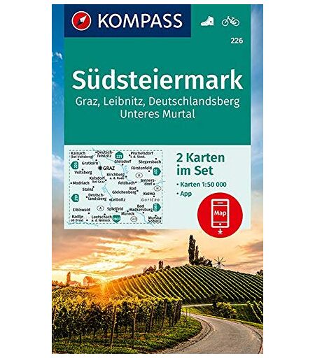 KOMPASS-Karten GmbH - GEBRAUCHT KOMPASS Wanderkarte Südsteiermark, Graz, Leibnitz, Deutschlandsberg, Unteres Murtal (2-K-Set): 2 Wanderkarten 1:50000 im Set inklusive Karte zur ... (KOMPASS-Wanderkarten, Band 226) - Preis vom 18.09.2025 05:07:49 h