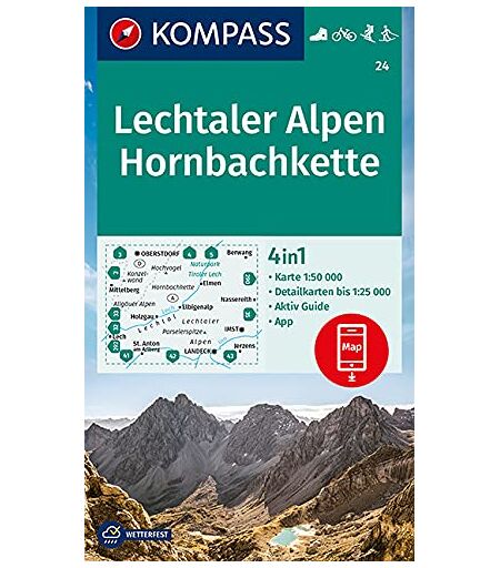 KOMPASS-Karten GmbH - GEBRAUCHT KOMPASS Wanderkarte Lechtaler Alpen, Hornbachkette: 4in1 Wanderkarte 1:50000 mit Aktiv Guide und Detailkarten inklusive Karte zur offline Verwendung ... Langlaufen. (KOMPASS-Wanderkarten, Band 24) - Preis vom 18.09.2025 05: