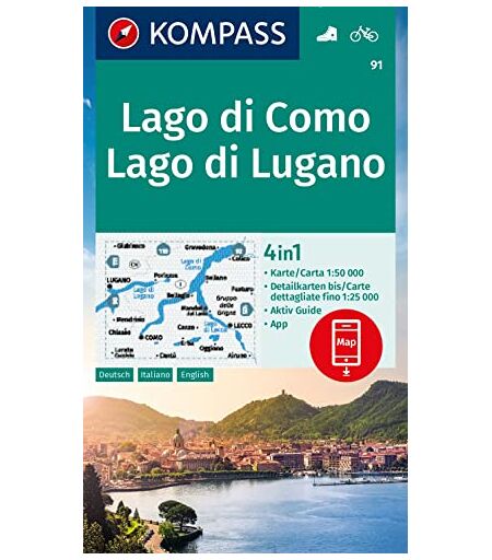KOMPASS-Karten GmbH - KOMPASS Wanderkarte 91 Lago di Como, Lago di Lugano 1:50.000: 4in1 Wanderkarte mit Aktiv Guide und Detailkarten inklusive Karte zur offline Verwendung in der KOMPASS-App. Fahrradfahren.