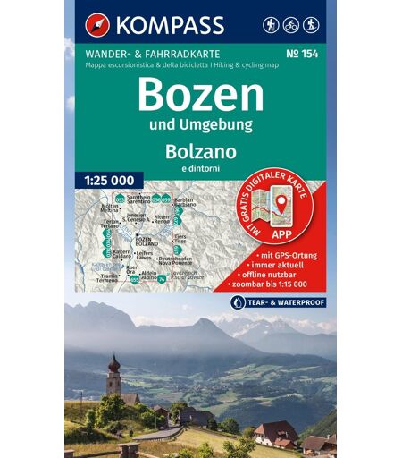 KOMPASS Wanderkarte 154 Bozen und Umgebung / Bolzano e dintorni 1:25.000: Wander- und Fahrradkarte in einem - inklusive Offline-Verwendung in der ... Radwege. Skitouren. Langlaufen. Reiten.