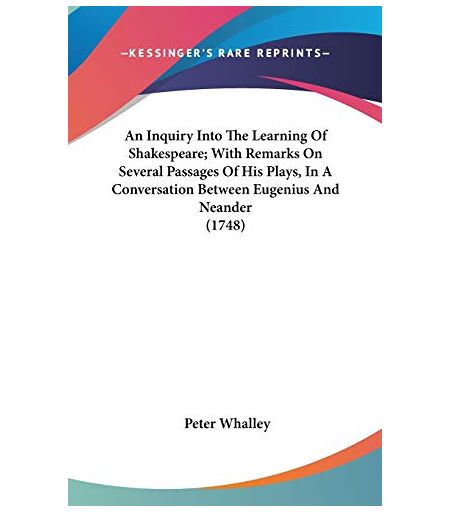 Peter Whalley - An Inquiry Into The Learning Of Shakespeare; With Remarks On Several Passages Of His Plays, In A Conversation Between Eugenius And Neander (1748)