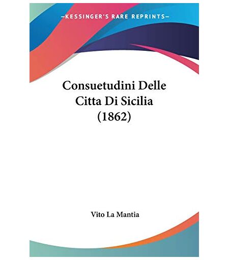 Vito La Mantia - Consuetudini Delle Citta Di Sicilia (1862)