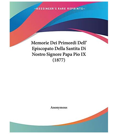 Anonymous - Memorie Dei Primordi Dell' Episcopato Della Santita Di Nostro Signore Papa Pio IX (1877)