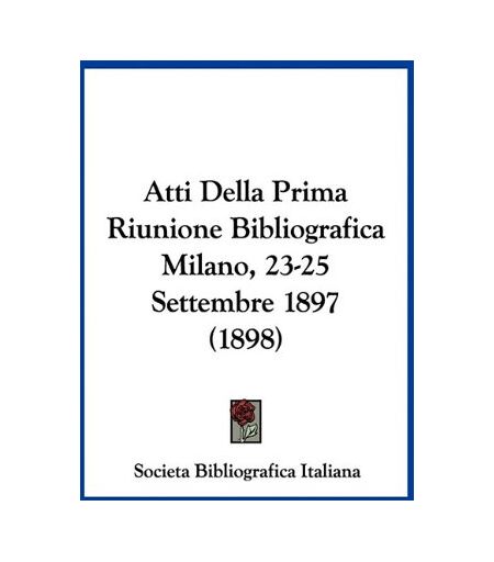 Societa Bibliografica Italiana - Atti Della Prima Riunione Bibliografica Milano, 23-25 Settembre 1897 (1898)