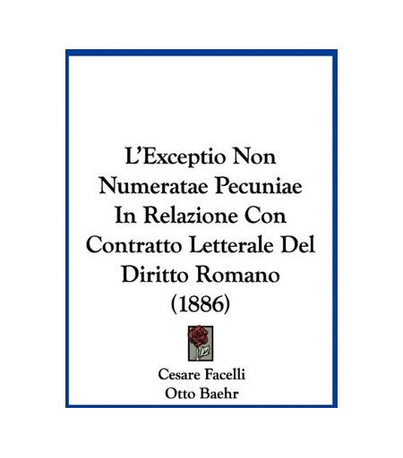 Cesare Facelli - L'Exceptio Non Numeratae Pecuniae In Relazione Con Contratto Letterale Del Diritto Romano (1886)