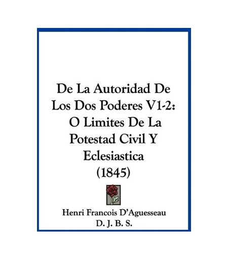 D'Aguesseau, Henri Francois - de La Autoridad de Los DOS Poderes V1-2: O Limites de La Potestad Civil y Eclesiastica (1845)
