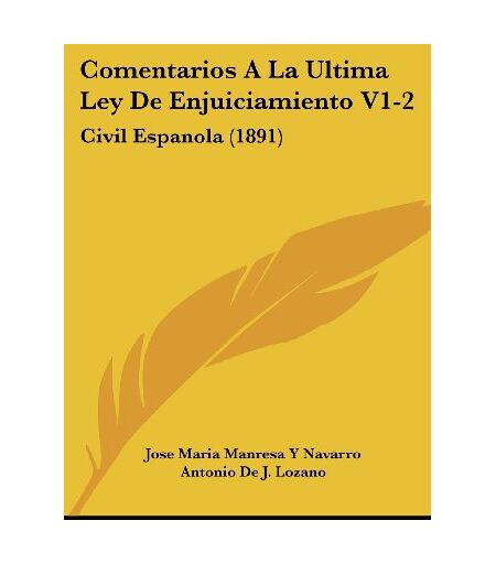 Navarro, Jose Maria Manresa Y - Comentarios A La Ultima Ley De Enjuiciamiento V1-2: Civil Espanola (1891)