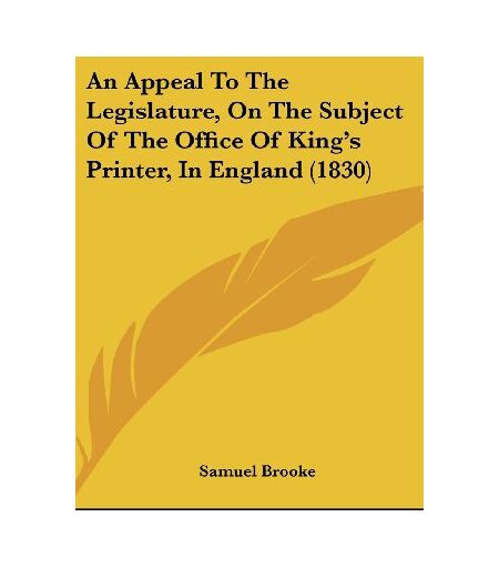 Samuel Brooke - An Appeal To The Legislature, On The Subject Of The Office Of King's Printer, In England (1830)