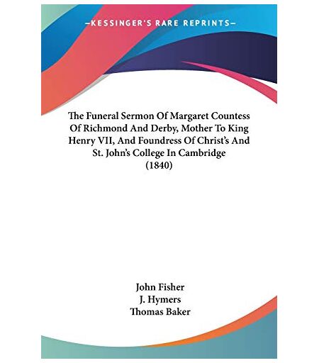 John Fisher - The Funeral Sermon Of Margaret Countess Of Richmond And Derby, Mother To King Henry VII, And Foundress Of Christ's And St. John's College In Cambridge (1840)
