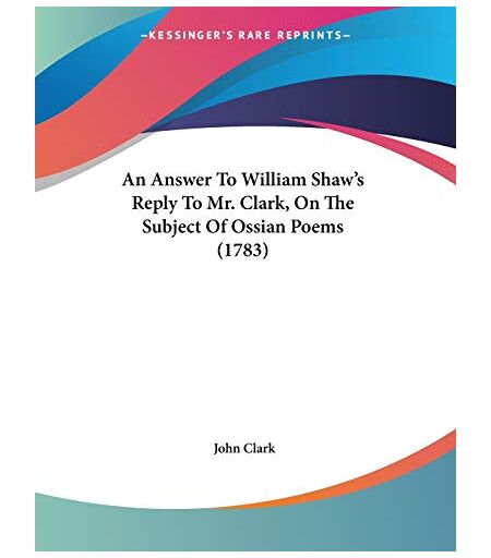 John Clark - An Answer To William Shaw's Reply To Mr. Clark, On The Subject Of Ossian Poems (1783)