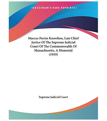 Supreme Judicial Court - Marcus Perrin Knowlton, Late Chief Justice Of The Supreme Judicial Court Of The Commonwealth Of Massachusetts, A Memorial (1919)