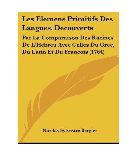 Bergier, Nicolas Sylvestre - Les Elemens Primitifs Des Langues, Decouverts: Par La Comparaison Des Racines De L'Hebreu Avec Celles Du Grec, Du Latin Et Du Francois (1764)