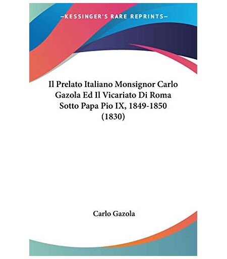 Carlo Gazola - Il Prelato Italiano Monsignor Carlo Gazola Ed Il Vicariato Di Roma Sotto Papa Pio IX, 1849-1850 (1830)