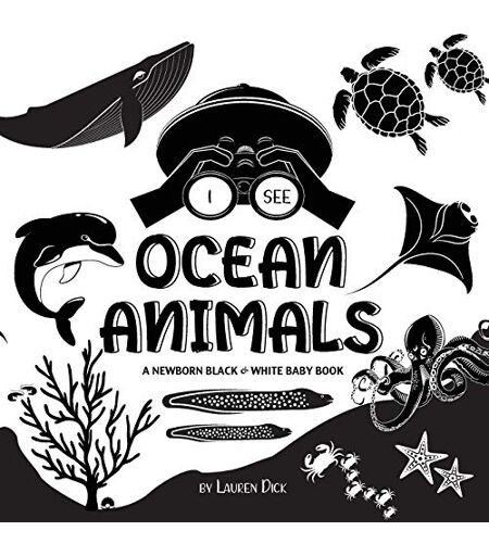 Lauren Dick - I See Ocean Animals: A Newborn Black & White Baby Book (High-Contrast Design & Patterns) (Whale, Dolphin, Shark, Turtle, Seal, Octopus, Stingray, ... Early Readers: Children's Learning Books)