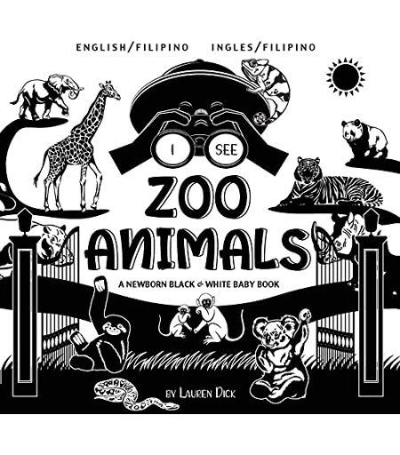 Lauren Dick - I See Zoo Animals: Bilingual (English / Filipino) (Ingles / Filipino) A Newborn Black & White Baby Book (High-Contrast Design & Patterns) (Panda, ... Chameleon, Shark, Dolphin, Turtle, Penguin, P