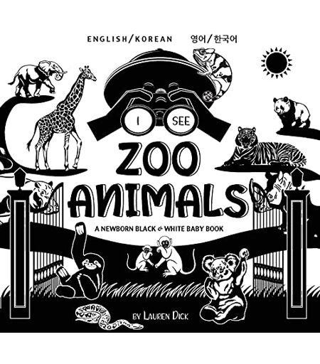 Lauren Dick - I See Zoo Animals: Bilingual (English / Korean) (¿¿ / ¿¿¿) A Newborn Black & White Baby Book (High-Contrast Design & Patterns) (Panda, Koala, Sloth, ... Shark, Dolphin, Turtle, Penguin, Polar Bear,