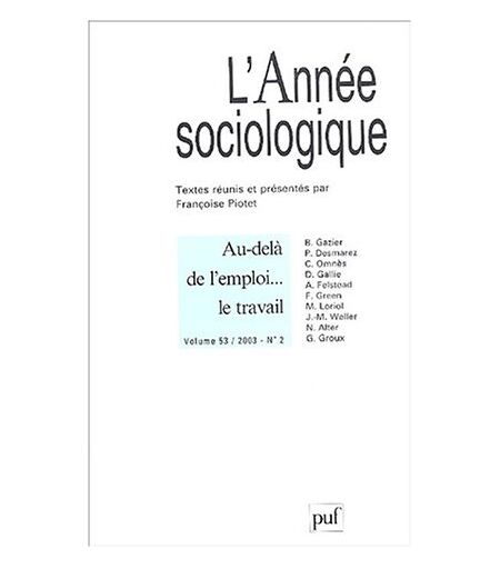 Bernard Gazier - GEBRAUCHT L'Année sociologique, N°2 : volume 53 : Au-delà de l'emploi... le travail (Annee Sociologie) - Preis vom 18.09.2025 05:07:49 h
