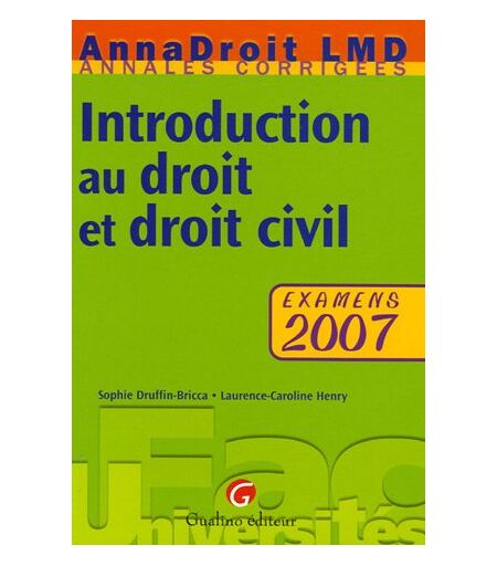 Sophie Druffin-Bricca - GEBRAUCHT Introduction au droit et au droit civil: Examens - Preis vom 18.09.2025 05:07:49 h