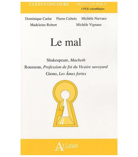 Dominique Carlat - GEBRAUCHT Le mal : Shakespeare, Macbeth; Rousseau, Profession de foi du Vicaire savoyard; Giono, Les Ames fortes - Preis vom 18.09.2025 05:07:49 h