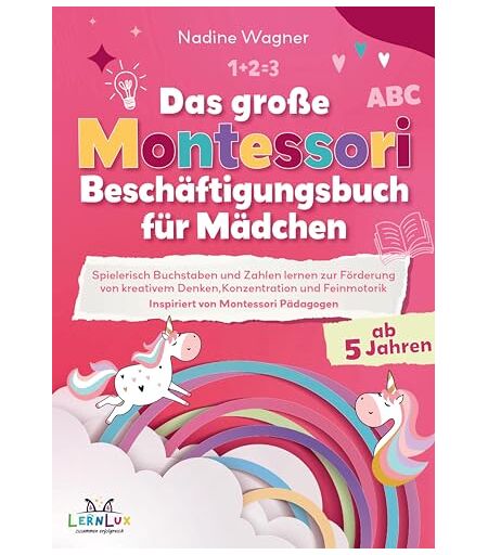 Nadine Wagner LernLux Verlag - Das Große Montessori Beschäftigungsbuch für Mädchen - Spielerisch Buchstaben und Zahlen lernen zur Förderung von kreativem Denken
