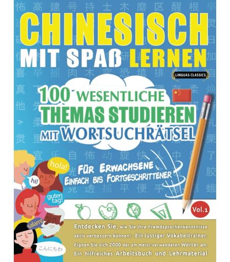 Binding : paperback, Label : CHINESISCH MIT SPAß LERNEN - FÜR ERWACHSENE : EINFACH BIS FORTGESCHRITTENER – 100 WESENTLICHE THEMAS STUDIEREN MIT WORTSUCHRÄTSEL - VOL.1 : Entdecken ... aktiv verbessern können!, medium : paperback, publicationDate : 2022-01-25, languages : german ...