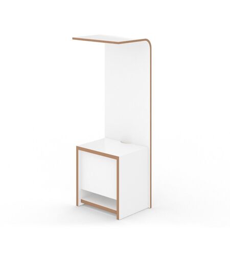 Das Tojo Fon Regal von Designer Alexander Schenk ist eine praktische Ablage für Telefon, Notizzettel, Schlüssel, Handy und alle anderen Kleinigkeiten, die man am besten schnell zur Hand hat. Das schmale Stehregal bietet elegant verdeckten Stauraum für Kabel, Router oder Telefonbücher. Das Tojo Fon Regal wird aus MDF gefertigt und mit weißem Melaminharz beschichtet, wodurch der Stehtisch mit der Wand zu verschmelzen scheint. Die charakteristische Holzkante hebt sich elegant ab und verleiht dem Tojo Fon Kleinmöbel einen natürlichen Charme. Ein integrierter Container an der Unterseite des Regals verbirgt Kabel für Telefon und Router elegant, dank des Deckels bleibt alles aber leicht zugänglich. Außerdem bietet ihnen das Tojo Fon Regal viel Stauraum für Telefonbücher und Ähnliches. Das Schönste aber ist, dass das Tojo Fon Regal ganz ohne Bohrlöcher in der Wand auskommt und genügend Abstand f... ...
