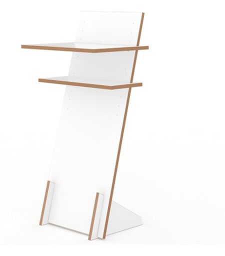 Das Tojo Kleinmöbel Pult Tisch ist ein Lese- und Arbeitspult, das sich durch seine funktionale Gestaltung auszeichnet und in fast alle Umgebungen passt. Das Wort „Pult“ stammt vom Lateinischen pulpitum, was so viel wie Brettergestell, Brettergerüst bedeutet. Durch sein funktionales Konstruktionsprinzip lassen sich Ablage- und Arbeitsfläche von dem Tojo Kleinmöbel Pult Tisch in variaber Höhe montieren, so dass Sie das Möbel sowohl im Stehen als auch im Sitzen nutzen können. Das Lese- und Arbeitspult besteht aus weiß beschichteter MDF-Platte, deren warmer Braunton an den Seitenflächen sichtbar ist. Die Flächen sind beliebig in variablen Abständen von 5 cm montierbar. Tojo Pult ist ideal auch für all dienigen, die gern im Stehen arbeiten. Das obere Brett des Tojo Pult ist bis zu 5 kg belastbar. Passend zu dem Tojo Kleinmöbel Pult Tisch finden Sie auch die weiteren Produkte vo... ...