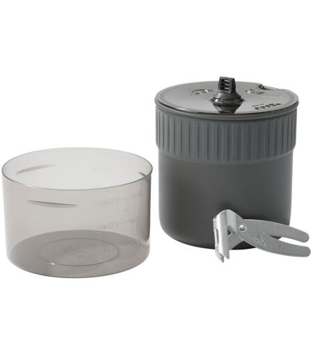 Ebenso wie bei der kleineren Solo Variante passt auch beim Trail Mini™ Duo Cook Set alles perfekt ineinander. Topf, Schüssel, Griffzange und Deckel kommen insgesamt auf nur 289 g, was selbst für einen Solo Wanderer noch als leichte Küche durchgeht. Die einzelnen Bestandteile sind dabei raffiniert durchdacht und aus hochwertigen Materialien gefertigt. Der 1,2 l große Topf besteht aus äußerst robustem und kratzfestem Aluminium, das durch die harteloxierte Verarbeitung besonders langlebig ist. Am oberen Rand des Topfes ist ein breiter isolierter Griffring angebracht, damit du auch heiße Getränke und Gerichte bequem in der Hand halten kannst. Die Griffzange kommt als Alternative zum Einsatz, wenn der Topf beispielsweise noch auf dem Kocher steht. Die 830 ml große Schüssel ist aus hitze- und kältebeständigem Polypropylen gefertigt. Aus diesem Material ist auch der durchsichtige Deckel mit Siebausguss hergestellt worden, der die Kochzeit verringert. Die beiden Koch- und Essgefäße bringen es zusammen auf ein Volumen von knapp über 2 Litern, sodass genügend Kapazität für zwei Fertiggerichte oder ordentliche Trekkingmahlzeiten vorhanden ist. Die Verschachtelung des Trail Mini™ Duo Cook Sets ist so gestaltet, dass eine 220 g Kartusche und ein kleiner Kocher wie der Pocket Rocket noch mit hineinpassen. So erhältst du ein platzsparendes, leichtes, gut durchdachtes und hochwertiges Kochset, mit dem du dich und deine Begleitung am Ende der Etappe mit stärkenden Outdoor Gerichten versorgen kannst. ...