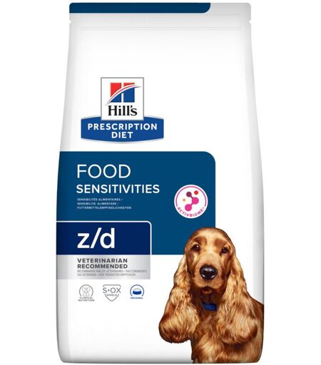 Hill's Prescription Diet z/d Original Hundefutter Bitte beachten Sie, dass spezielles Diätfutter nur nach tierärztlicher Empfehlung eingesetzt und die Fütterung – einschließlich möglicher Verlängerungen – regelmäßig mit Ihrer Tierärztin oder Ihrem Tierarzt abgestimmt werden sollte. Lassen Sie Ihr Tier dabei etwa alle sechs Monate kontrollieren und suchen Sie bei jeder Verschlechterung seines Gesundheitszustands umgehend fachlichen Rat. Prescription Diet z/d Hundefutter ist klinisch erwiesen, um die mit Nahrungsmittelunverträglichkeiten verbundenen Haut- und Magen-Darm-Symptome zu reduzieren. Verstärkt durch die Hill's ActivBiome+ Zutatentechnologie, eine exklusive Mischung aus Präbiotika, die klinisch erwiesen schnell das Darmmikrobiom nährt, um eine gute Verdauungsgesundheit und das allgemeine Wohlbefinden zu unterstützen.Wie es funktioniert:Mit hochhydrolysiertem tierischem ProteinMit essentiellen Fettsäuren, einem hohen Gehalt an essentiellen Fettsäuren und Vitamin EMit einer exklusiven Mischung aus prebiotischen BallaststoffenMit klinisch erprobten AntioxidantienWie es hilft:Klinisch erwiesen zur Reduzierung von Haut- und Magen-Darm-Symptomen, die durch Nahrungsmittelallergien verursacht werden.Hilft, Haut und Fell sichtbar zu verbessernErmöglicht eine hervorragende StuhlqualitätHilft, ein gesundes Immunsystem zu unterstützenHinweis:Hauptindikationen Unerwünschte Reaktionen auf Nahrungsmittel & VermeidungsdiätExterne (chronische)Otitis externa (chronisch)Enthropathia exsudativa mit LymphangiektasieAndere Indikationen Juckende DermatitisExokrine Pankreasinsuffizienz (EPI)FlatulenzFormen von’chronische Enteropathien (Durchfall oder Erbrechen)Antwort auf NahrungsumstellungAntwort auf AntibiotikaAntwort auf KortikoideAnwendungsempfehlungen:Erwachsene bis zur PflegeGewicht des Hundes (kg)Tagesmenge - g1302554905105101802030030410405055060060+108 pro 10 kgBitte fragen Sie Ihren Tierarzt nach spezifischen Informationen zur'fragen Sie nach der Ernährung Ihres Tieres.Vorsichtsmaßnahmen für die Anwendung: Verwenden Sie dieses Futter nicht während der Wachstumsphase, Trächtigkeit oder Laktation.Zusammensetzung:Hochwertige Proteine und sorgfältig ausgewählte ZutatenOriginal: Maisstärke, Hühnerleberhydrolysat, gemahlene Pekannussschalen, Zellulose, Kokosnussöl, Mineralstoffe, Leinsamen, Rübentrockenschnitzel, Sojaöl, Zitrusfrucht-Trockenschnitzel, Fischöl, getrocknete Cranberries, Vitamine, Spurenelemente und Beta-Carotin. Mit einem natürlichen Antioxidans (Tocopherol-Mischung).Analytische Bestandteile:Eiweiß 17,7%, Fettgehalt 14,5%, Rohfaser 7,2%, essentielle Fettsäuren 4,2%, Omega-3-Fettsäuren 1,1%, Omega-6-Fettsäuren 3,1%, Rohasche 4,8%, Calcium 0,59%, Phosphor 0,51%, Natrium 0,24%, Kalium 0,69%, Magnesium 0,07%; pro kg : Vitamin A 6,574IE, Vitamin D3 659IE, Vitamin E 830mg, Vitamin C 115mg, Beta-Carotin 1,4mg.Zusatzstoffe pro kg: Ernährungsphysiologische Zusatzstoffe: Vitamin D3 (1.710 IE/kg), Eisen (367 mg/kg), Jod (9,5 mg... ...