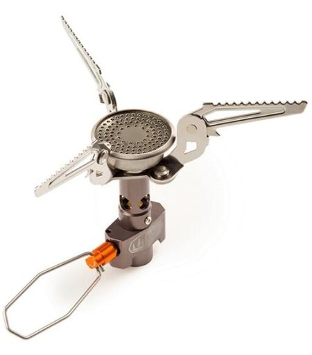 Der Pinnacle Canister Stove wiegt gerade einmal 65 g und liefert dafür eine beeindruckend effiziente Leistung ab. Einen Liter Wasser bringt er in ca. 3.30 min zum Sprudeln. Die Handhabung gestaltet sich simpel. Die Topfauflagen werden hochgeklappt und der Kocher auf die Kartusche geschraubt. Dank des schmalen Designs passt der Pinnacle Canister Stove in jeden Topf und nimmt keinen weiteren Platz im Rucksack ein. Ein perfekter Kocher für den Solo Langzeitwanderer oder einfach für den gewichtsbewussten Wanderer. ...
