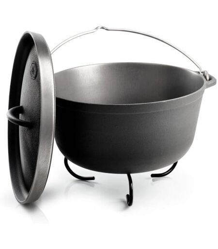 Der GSI Guidecast Dutch Oven 5 Qt fasst 4,7 Liter und ist ideal, um direkt über dem Feuer zu kochen. Du kannst ihn trotzdem auch auf allen anderen Herdsorten verwenden, sodass er bei weitem nicht nur für den Outdoor Einsatz geschaffen ist. Der GSI Guidecast Dutch Oven 5 Qt bringt einen stabilen Deckel mit, auf den du für eine gleichmäßige Rundum-Wärme auch noch Kohlen platzieren kannst. Mit seinem robusten Henkel kannst du den Feuertopf zum Beispiel an einem Dreibein aufhängen. Neben seinem Deckel bringt der GSI Guidecast Dutch Oven 5 Qt auch einen robusten Untersetzer mit, sodass du immer eine hitzebeständige Abstellfläche zur Verfügung hast oder den Topf stabil direkt über Kohlen platzieren kannst. Zwar ist der GSI Guidecast Dutch Oven 5 Qt mit fast 5 kg Eigengewicht wie jedes gusseiserne Kochgeschirr nicht gerade für die Rucksacktour geeignet, aber verglichen mit anderen Töpfen dieser Größenordnung wiegt er trotzdem bedeutend weniger. Beachte zu guter Letzt noch, dass auch die Griffe vom GSI Guidecast Dutch Oven 5 Qt und vom Deckel sehr heiß werden und du in jedem Fall Topflappen oder hitzefeste Handschuhe brauchst, um den Topf oder den Deckel zu bewegen. Alles in allem ist der GSI Guidecast Dutch Oven 5 Qt ein hochwertiger, robuster und vergleichsweise leichter Kochtopf, mit dem du Zuhause wie unterwegs leckere Gerichte für die ganze Familie oder die Wandergruppe zubereiten kannst. ...