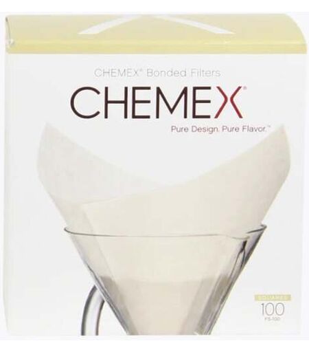 chwerer und dicker als herkömmliche Filter, wodurch der Wasserfluss langsamer vonstatten geht und somit mehr Zeit für die vollständige Aromenentfaltung bleibt. Die Chemex FS-100 Filter sind für 5-10 Tassen geeignet und passen auf alle Chemex-Karaffen mit Ausnahme der Modelle CM-1M, CM-1C und CM-1GH. ...