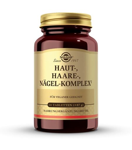 Anwendungsgebiet von Solgar Haut Haare Nägel Komplex TablettenOrganischer Schwefel spielt im Körper eine bedeutende Rolle. Als Teil anderer Stoffe wie Aminosäuren, Enzymen, Hormonen und Glutathion ist es wichtig, sich genügend damit zu versorgen. Zusätzlich ist organischer Schwefel auch ein Strukturbaustein für das Bindegewebe. Auch Kollagen ist Teil des Bindegewebes, sorgt für straffe Haut und ausreichend Feuchtigkeit. Vitamin C ist ein wichtiger Bestandteil der Formel, da es zu einer normalen Kollagenbildung und einer normalen Hautfunktion beiträgt. MSM® (organischer Schwefel) mischt auch bei der Synthese von Hyaluronsäure und Kollagen mit. Antioxidantien schützen vor oxidativem Stress, der Spuren im Körper hinterlassen kann. Zink, Kupfer und Vitamin C schützen vor diesem, der z. B. auch durch den Einfluss von UV-Licht entstehen kann. Solgar Haut Haare Nägel Komplex Tabletten enthält MSM®, Rotalge, Vitamin C, L-Lysin, L-Prolin, Zink und Kupfer.Wirkstoffe / Inhaltsstoffe / ZutatenZutaten von Solgar Haut Haare Nägel Komplex Tabletten: Methylsulfonylmethan, Füllstoffe (Mikrokristalline Cellulose, Hydroxypropylmethylcellulose), Trennmittel (Siliciumdioxid, Stearinsäure, Magnesiumstearat), Rotalgenpulver (L. calcareum), Vitamin C (L-Ascorbinsäure), Überzugsmittel (Hydroxypropylmethylcellulose, Polydextrose, Calciumcarbonat, Mittelkettige Triglyceride), L-Lysin, L-Prolin, Zinkcitrat, Emulgator Natrium-Carboxymethylcellulose, Kupferbisglycinat3GegenanzeigenBei bekannter Überempfindlichkeit gegenüber einen der oben genannten Inhaltsstoffe sollte dieses Produkt nicht angewendet werden.DosierungVerzehrempfehlung von Solgar Haut Haare Nägel Komplex Tabletten: Zwei Tabletten pro Tag zu den Mahlzeiten einnehmen.HinweiseNahrungsergänzungsmittel stellen keinen Ersatz für eine abwechslungsreiche Ernährung dar. Eine ausgewogene Ernährung und gesunde Lebensweise ...