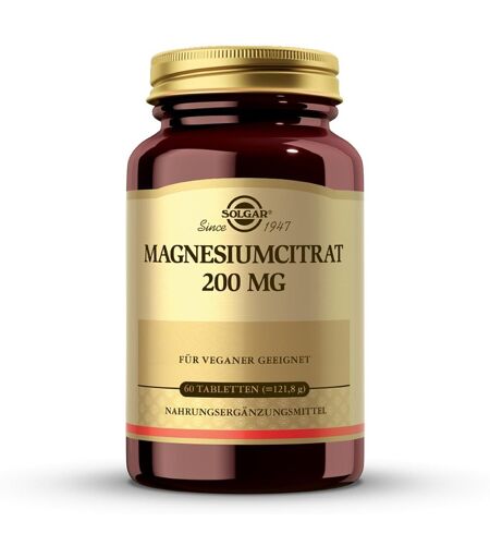 Anwendungsgebiet von Solgar Magnesium Citrat 200 mg TablettenMagnesium unterstützt eine normale Eiweißsynthese, leistet also einen Beitrag beim Energiestoffwechsel, genauer gesagt beim Abbau und der Verwertung von Kohlenhydraten und Proteinen. Zusätzlich unterstützt der Mineralstoff den Elektrolythaushalt und ist wichtig für die Aufrechterhaltung und Stabilisierung der Zellmembran, ist also auch für die Muskelfunktion unentbehrlich. Durch die Stabilisierung von Zellmembranen kann Magnesium die körpereigene Sensibilität gegen Stresshormone dämpfen. So unterstützt Magnesium das Nervensystem und eine ausgeglichene psychische Funktion. Solgar Magnesium Citrat 200 mg Tabletten enthält Magnesiumcitrat, eine organisch gebundene Form von Magnesium, die sehr gut aufgenommen werden kann und deshalb über eine hohe Bioverfügbarkeit verfügt.Wirkstoffe / Inhaltsstoffe / ZutatenZutaten von Solgar Magnesium Citrat 200 mg Tabletten: Magnesiumcitrat, Füllstoffe (Mikrokristalline Cellulose, Dicalciumphosphat), Trennmittel (Siliciumdioxid, Magnesiumstearat), Überzugsmittel (Hydroxypropylmethylcellulose, Hydroxypropylcellulose, Glycerin), Emulgator Natrium-CarboxymethylcelluloseGegenanzeigenBei bekannter Überempfindlichkeit gegenüber einen der oben genannten Inhaltsstoffe sollte dieses Produkt nicht angewendet werden.DosierungVerzehrempfehlung von Solgar Magnesium Citrat 200 mg Tabletten: Eine Tablette pro Tag zu einer Mahlzeit einnehmen.HinweiseNahrungsergänzungsmittel stellen keinen Ersatz für eine abwechslungsreiche Ernährung dar. Eine ausgewogene Ernährung und gesunde Lebensweise sind wichtig. Die empfohlene tägliche Verzehrmenge sollte nicht überschritten werden. Außerhalb der Reichweite von kleinen Kindern aufbewahren. Kühl und trocken lagern. Solgar Magnesium Citrat 200 mg Tabletten können in Ihrer Versandapotheke www.juvalis.de erworben werden. ...
