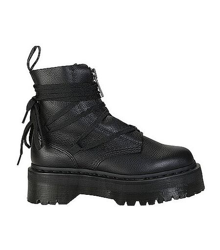 Reißverschluss. Spitze. Plateau. Showtime. Der Jarrick Stiefel ist eine besondere Variante des Dr. Martens Plateaustiefels, der vorne mit einem Reißverschluss und einer raffinierten Schnürung geschlossen wird. Die neueste Version des Stiefels besteht aus weichem, geschmeidigem Pisa-Leder mit dezentem Kieselfinish. Der ganz in Schwarz gehaltene Stiefel ist mit einer schwarz-grauen Fersenschlaufe und schwarzen Rahmennähten versehen und steht auf einer geriffelten Quad-Sohle für zusätzliche Höhe und Charakter. Entwickelt, um aufzufallen. Unsere hohe Plateausohle verleiht dem Design einen extra Boost – perfekt für Menschen, die sich gerne von der Masse abheben. Pisa ist ein mittelschweres Nappaleder mit weicher Struktur und einer reichlich pigmentierten, wachsartigen Oberfläche. Pisa ist ein mittelschweres Nappaleder mit einer weichen Struktur und einer reichlich pigmentierten, wachsartigen Oberfläche. Farbbezeichnung: Mono Black Pisa Material: Leder Futter: Leder  Sohle: Gummi  ...