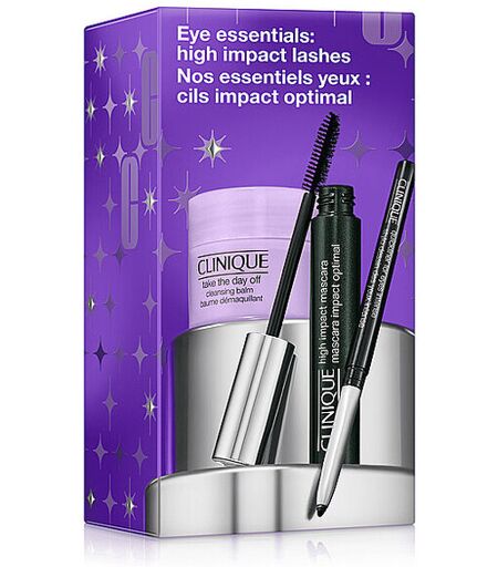 Ein Trio für atemberaubende Looks und Wimpern, die lange halten. Enthält eine Augencreme, einen Liner und eine langanhaltende Mascara. * Die High Impact™ Mascara verstärkt Volumen und Länge jeder einzelnen Wimper für einen üppigen, fülligen, markanten Look. * Quickliner™ For Eyes Intense ist ein hochpigmentierter, automatischer Konturenstift zum Betonen und Verwischen in einem. * Der Take The Day Off™ Cleansing Balm verwandelt sich von einem festen Balsam in ein seidiges Öl, um langanhaltendes Gesichts-Make-up, schweres, wasserfestes Augen-Make-up, Sonnenschutz und Schadstoffe schnell zu lösen. Dermatologische Expertise * Dermatologisch getestet. * Allergiegetestet. * 100 % Parfumfrei. Frei von * Duftstoffen Set enthält: Full Size High Impact™ Mascara in Black, 0.28oz/7ml Quickliner™ for Eyes Intense in Intense Black, 0.005oz/0.14g Take The Day Off™ Cleansing Balm, 0.5oz/15ml Anwendung: * Trage die High Impact™ Mascara vom Wimpernkranz ausgehend mit der Bürste bis in die Wimpernspitzen auf. Zum Aufbauen wiederholen. An den unteren Wimpern senkrecht auftragen. Pumpe die Bürste nicht im Behälter, denn so kommt Luft hinein, die deine Mascara austrocknen lässt. Um Klümpchen zu vermeiden, lass die Mascara zwischen den Schichten gut trocknen. * Konturiere die Augen mit dem Quickliner™ For Eyes Intense und verwende dann das Verwisch-Ende, um die Farbe für die gewünschte Wirkung sanft zu verblenden. Lass die Farbe 60 Sekunden lang einwirken, damit sie nicht verschmiert. * Verwende den Take the Day Off™ Cleansing Balm vor der Reinigung und anderen Pflegeprodukten. Massiere den Balsam mit den Fingerspitzen in die trockene Haut ein. Gut mit warmem Wasser abspülen und dann trocken tupfen. INCI: Ethylhexyl Palmitate, Carthamus Tinctorius (Safflower) Seed Oil, Caprylic/Capric Triglyceride, Sorbeth-30 Tetraoleate, Polyethylene, Peg-5 Glyceryl Triisostearate, WaterAquaEau, Tocopherol, Phenoxyethanol <ILN30654>Rds Product Name: High Impact Mascara Division: Cl (Clinique)Ingredients: WaterAquaEau, Copernicia Cerifera (Carnauba) Wax Copernicia Cerifera Cera Cire De Carnauba, Stearic Acid, Glyceryl Stearate, Polyisobutene, Silica, Acrylates Copolymer, Aminomethyl Propanediol, Vp/Eicosene Copolymer, Sodium Hyaluronate, Lauroyl Lysine, Pantethine, Melanin, Panthenol, Ethylhexylglycerin, Hydroxyethylcellulose, Calcium Aluminum Borosilicate, Pvp, Acacia Senegal Gum, Isostearic Acid, Simethicone, Dimethicone Peg-8 Polyacrylate, Urea, Glycerin, Pentaerythrityl Tetra-Di-T-Butyl Hydroxyhydrocinnamate, Sodium Lauryl Sulfate, Peg-8 Dimethicone, Disodium Edta, Sorbic Acid, Chlorphenesin, Sodium Dehydroacetate, Phenoxyethanol, [+/- Mica, Iron Oxides (Ci 77491), Iron Oxides (Ci 77492), Iron Oxides (Ci 77499), Bronze Powder (Ci 77400), Blue 1 Lake (Ci 42090), Titanium Dioxide (Ci 77891), Yellow 5 Lake (Ci 19140), Chromium Oxide Greens (Ci 77288), Chromium Hydroxide Green (Ci 77289), Carmine (Ci 75470), Bismuth Oxychloride (Ci... ...