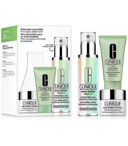 Setinhalt: Originalgröße Even Better Clinical™ Radical Dark Spot Corrector + Interrupter 1.7oz/50ml 7 Day Scrub Cream Rinse-Off Formula, 1.0oz/30ml Even Better Clinical™ Brightening Moisturizer, 0.5oz/15ml ...