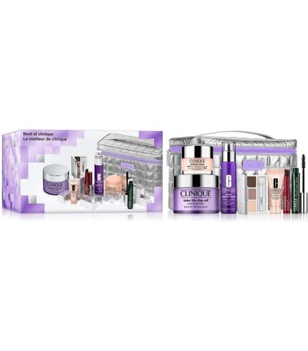 Clinique Best Of Clinique Skincare Makeup Set Eine Kollektion der beliebtesten unverzichtbaren Hautpflege- und Make-up-Produkte von Clinique in einem Set. Clinique Smart Clinical Repair™ Wrinkle Correcting Serum korrigiert sichtbar hartnäckige Linien und Falten. Mit der Kraft eines Retinoids, das sanft genug ist, um es zweimal täglich zu verwenden. Moisture Surge™ 100H Auto-Replenishing Hydrator bekämpft die täglichen Auswirkungen von Austrocknung. Dringt in die Haut ein für tiefe, lang anhaltende Feuchtigkeit, damit die Haut widerstandsfähiger aussieht und strahlt. Take The Day Off™ Cleansing Balm verwandelt sich von einem festen Balsam in ein seidiges Öl, um hartnäckiges Augen- und Gesichts-Make-up sowie Sonnenschutzmittel zu entfernen. Reinigt gründlich und lässt sich vollständig abspülen. Limited Edition All About Shadow™ Trio lässt dich verschiedene Augenlooks kreieren, von natürlich bis dramatisch. High Impact™ Mascara erhöht das Volumen und die Länge jeder Wimper für üppigere, vollere, auffälligere Wimpern. Almost Lipstick in unserem Kultklassiker Black Honey bietet eine transparente, aber aufbaubare Farbe, die schmeichelt und doch bei jedem anders aussieht. Die leichte All About Eyes™ Creme-Gel reduziert sichtbar Schwellungen und Augenringe. Eine Kollektion von Clinique’s beliebtesten Hautpflege- und Make-up-Essentials in einem Set. Inhaltsstoffe: water\aqua\eau, copernicia cerifera (carnauba) wax\ copernicia cerifera cera \cire de carnauba, stearic acid, glyceryl stearate, polyisobutene, silica, acrylates copolymer, aminomethyl propanediol, vp/eicosene copolymer, sodium hyaluronate, lauroyl lysine, pantethine, melanin, panthenol, ethylhexylglycerin, hydroxyethylcellulose, calcium aluminum borosilicate, pvp, acacia senegal gum, isostearic acid, simethicone, dimethicone peg-8 polyacrylate, urea, glycerin, pentaerythrityl tetra-di-t-butyl hydroxyhydrocinnamate, sodium lauryl sulfate, peg-8 dimethicone, disodium edta, sorbic acid, chlorphenesin, sodium dehydroacetate, phenoxyethanol, [+/- mica, iron oxides (ci 77491), iron oxides (ci 77492), iron oxides (ci 77499), bronze powder (ci 77400), blue 1 lake (ci 42090), titanium dioxide (ci 77891), yellow 5 lake (ci 19140), chromium oxide greens (ci 77288), chromium hydroxide green (ci 77289), carmine (ci 75470), bismuth oxychloride (ci 77163), ultramarines (ci 77007), aluminum powder (ci 77000)]Whitman LBS NV Nijverheidstraat 15 2260 Oevel - BE contactmanufacturer@elcompanies.com ...