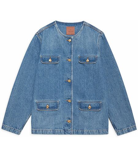 Die Janet-Jacke bietet eine moderne Neuinterpretation einer vintage-inspirierten Silhouette, gefertigt aus mittelschwerem, festem Denim in einer Bio-Baumwollmischung mit mittelblauer Waschung. Damen Jäckchen aus reiner Baumwolle Rundhalsausschnitt Langarm Schließt mit Knopfleiste Vier Pattentaschen mit Knöpfen Kastenförmige Passform Farbbezeichnung: Washed Blue Material: 50 % Baumwolle, 50 % Bio-Baumwolle ...