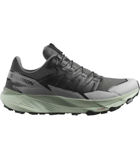 Der Salomon THUNDERCROSS Herren Trailschuh steht für dynamische Dämpfung und kompromisslosen Grip. Der Thundercross ist ein Trailrunningschuh für ein dynamisches, gedämpftes Laufgefühl mit hervorragendem Grip und präzisem Halt. Ausgestattet mit aggressiven 5 mm Stollen für jedes Gelände, egal wie schwierig, technisch oder schmutzig. In den französischen Alpen entwickelt und auf allen Untergründen getestet, von rollenden Hügeln über steinige Pisten bis hin zu Strecken mit gutem Grip. Laufleistung Eine elastische und bequeme Zwischensohle sorgt für einen kraftvollen Abstoß und eine weiche Landung und damit für ein angenehmes Laufgefühl. Grip Aggressive, tiefe 5 mm Stollen bieten hervorragenden Grip und Traktion auf allen technischen Untergründen und Oberflächen. Passform Inspiriert von den besten Trailrunning-Passformen, mit Sensifit™-Konstruktion für präzisen, optimalen Halt am Fuß und zuverlässigen, weichen Komfort. Weitere Details zum Salomon THUNDERCROSS Laufschuh für Herren: All Terrain Contagrip® - Unsere All Terrain Contagrip® Sohle ist für eine Vielzahl unterschiedlicher Untergründe ausgelegt. Sie bietet Haltbarkeit und Trittsicherheit auf nassen, trockenen und harten Oberflächen. Chevron-Stollen - Stollendesign, das sich tief in den Untergrund gräbt und multidirektionalen Grip bietet. Verbessert die Traktion auf weichem Untergrund wie Schlamm oder lockerem Geröll. Energy Foam - Leichter, reaktiver Schaumstoff aus EVA und Olefin (OBC) für dauerhafte Dämpfung und Energierückgabe. ME:sh®-Einsatz für Geröllschutz Quicklace™ Schnürsystem Recyceltes Material Gewicht: 290 g Sprengung: 4 mm ...