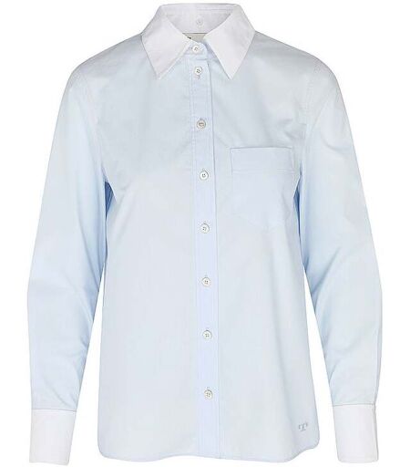 Damen Bluse aus Baumwoll-Popeline Abnehmbarer Kragen in Kontrastfarbe Langarm Perlmuttknopf vorne in der Mitte, an den Ärmelbündchen und am Kragen Gesticktes Logo an der linken Hüfte Gerade Passform Eine aufgesetzte Brusttasche Gerade Passform Farbbezeichnung: Crisp Blue Material: 100% Baumwolle ...