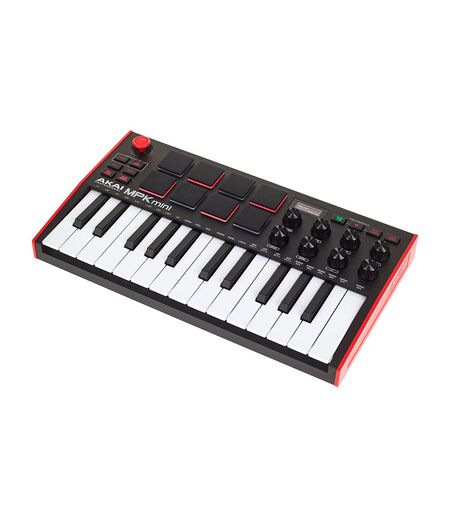 AKAI Professional MPK Mini MK3; Mini MIDI Controller; 25 anschlagsdynamische Minitasten; Oktavwahlschater für 10 Oktaven Tonumfang; 4-Wege Joystick für Pitch- & Modulationskontrolle; OLED-Display zur Parameter-Anzeige; 8 MPC Pads mit Note Repeat und Full Level Funktion; 8 zuweisbare Endlosregler; integrierter Arpeggiator; Sustain-Pedal Anschluß (6.3mm Klinke); USB-B Port (Class Compliant); NKS-Unterstützung zur direkten Steuerung von über 2.000 NKS-kompatiblen Instrumenten und Effekten; inklusive kostenlosem Native Instruments Komplete 15 Select Bundle für ein Genre nach Wahl für sofortiges Ausprobieren und Nutzen der NKS-Funktionalität; Abmessungen: 318 x 181 x 44 mm (BxTxH); Gewicht: 750 g; passende Tasche: Art. 485306 (nicht im Lieferumfang enthalten); passender Koffer: Art. 495975 (nicht im Lieferumfang enthalten) ...