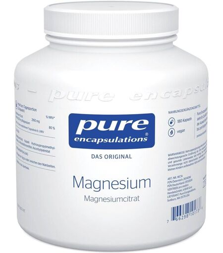 Nahrungsergänzungsmittel sind kein Ersatz für eine ausgewogene und abwechslungsreiche Ernährung und eine gesunde Lebensweise. Magnesium Magnesiumcitrat Mineralstoff für den EnergiestoffwechselMagnesium unterstützt nicht nur eine gesunde Muskelfunktion und den Energiestoffwechsel, es spielt auch für Nerven und Psyche eine wichtige Rolle. Deshalb kann es u.a. in stressigen Zeiten als Nahrungsergänzung empfohlen werden. Pure Encapsulations® bietet Magnesium in der organischen Citratform für eine ideale Aufnahme.Produkt der Kölner Liste Pure Encapsulations® ist mit einer Auswahl der beliebtesten Sport-Produkte auf der Kölner Liste® vertreten und bietet damit höchste Transparenz hinsichtlich der Inhaltsstoffe und größtmögliche Sicherheit in der Anwendung. Damit unterstreicht die weltweit größte Dopingpräventionsplattform für Nahrungs-ergänzungsmittel die Qualität der getesteten Produkte. Gesundheitlicher Nutzen der Inhaltsstoffe – zum Ausgleich vermehrter Magnesiumverluste (Elektrolytgleichgewicht) – zur Deckung eines erhöhten Bedarfs in Situationen vermehrter Anforderung Magnesium – trägt zu einer normalen psychischen Funktion bei – trägt zu einer normalen Funktion des Nervensystems bei – trägt zur Verringerung von Müdigkeit und Ermüdung bei – trägt zu einer normalen Muskelfunktion bei Pure Encapsulations® steht für Qualität. Von der Auswahl der Rohstoffe bis zum fertigen Produkt. Die wissenschaftlich fundierten Nährstoff-Präparate zeichnen sich besonders durch ihre Bioverfüg-barkeit und Verträglichkeit aus. Dank der hypoallergenen Herstel-lung eignen sich die Produkte auch sehr gut für sensible Personen, Menschen mit Nahrungsmittelunverträglichkeiten und Allergiker. frei von unnötigen Zusatzstoffen frei von Laktose und Gluten frei von künstlichen Farbstoffen frei von Transfetten und gehärteten Fetten frei von Trennmitteln und Überzügen Zutaten Magnesiumcitrat, Überzugsmittel: Hydroxypropylmethylcellulose, Antioxidationsmittel: AscorbylpalmitatNährwerte Durchschnittliche Nährwerte: pro 2 Kapseln % NRV* Magnesiumcitrat (enthält 300 mg Magnesium) 2160 mg 80 % Verzehrempfehlung:2x1 Kapsel pro Tag zu oder zwischen den Mahlzeiten. Hinweis Die empfohlene tägliche Verzehrmenge nicht überschreiten. Aufbewahrung Außerhalb der Reichweite von kleinen Kindern aufbewahren. Kühl und trocken lagern.Nettofüllmenge 90 Kapseln = ℮ 98 g 180 Kapseln = ℮ 196 g Herstellerpro medico HandelsGmbHOttobrunner Straße 41 82008 Unterhaching Deutschland ...
