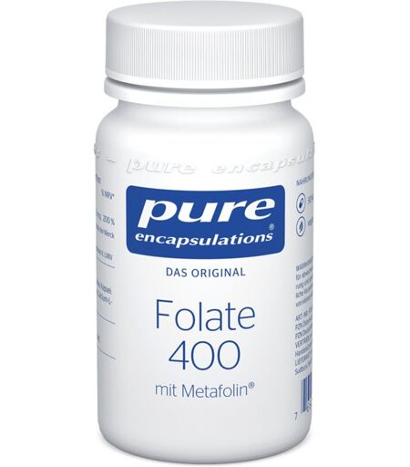Anwendungsgebiet von Pure Encapsulations Folate 400 KapselnPure Encapsulations Folate 400 Kapseln steht für hochwertige Reinsubstanzen, frei von versteckten Zusatzstoffen. Die hypoallergenen Präparate garantieren höchste Qualität von Mikronährstoffen, optimale Aufnahme im Körper sowie maximale Verträglichkeit für sensible Personen und Allergiker. Der Begriff „Folat“ bezeichnet ein wasserlösliches Vitamin, das für die menschliche Gesundheit unverzichtbar ist. Das Vitamin ist an einer Vielzahl von Stoffwechselprozessen im Körper beteiligt und muss in ausreichender Menge mit der Nahrung aufgenommen werden. Pure Encapsulations Folate 400 Kapseln dient zur Sicherung einer effektiven Folat-Versorgung bei reduzierter Folsäure-Zufuhr über die Ernährung oder erhöhtem Bedarf Folat. Pure Encapsulations Folate 400 Kapseln hat eine Funktion bei der Zellteilung und trägt zu einem normalen Aufbaustoffwechsel bei. Folat verringert Müdigkeit und Ermüdung und unterstützt eine gute geistige Leitungsfähigkeit. Wirkungsweise von Pure Encapsulations Folate 400 KapselnDas besondere an Pure Encapsulations Folate 400 Kapseln ist, dass es Metafolin® enthält. Das ist der Stoff, der bereits im Körper natürlich vorkommenden bioaktiven Form von Folsäure. Metafolin® ist direkt für den Organismus verfügbar, da es im Gegensatz zu Folsäure nicht mehr über ein Enzym aktiviert werden muss. Es ist schwierig, die empfohlene Menge an Folat mit der Nahrung aufzunehmen. Eine ausreichende Versorgung mit Folsäure ist für die Zellteilung von Bedeutung.Wirkstoffe / Inhaltsstoffe / ZutatenPure Encapsulations Folate 400 Kapseln: Metafolin® ist eine eingetragene Marke der Merck KGaA, Darmstadt, Deutschland Zutaten: Füllstoff: Mikrokristalline Cellulose, Kapsel: Hydroxypropylmethylcellulose, Calcium-L-Methylfolat (Metafolin®) Inhalt pro Tagesportion (1 Kapsel): Folsäure (als Calcium-L-Methylfolat, Metafolin®): 4 ...
