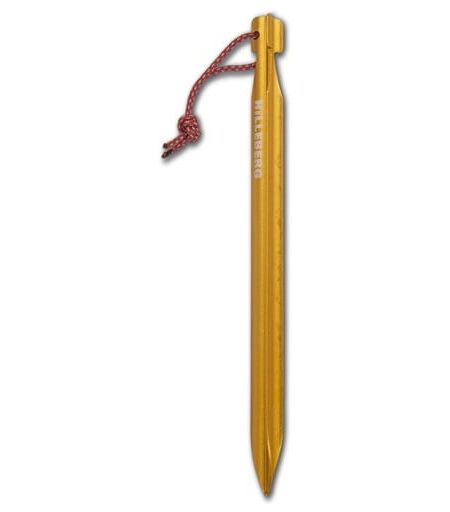 Hergestellt ist der Y-Peg Hering aus gehärtetem Aluminium, man muss mit ihm keineswegs zimperlich umgehen und kann ihn auch mal mit einem Stein oder anderen harten Gegenständen einschlagen. Damit man keine Probleme beim Herausziehen bekommt, hat der Hersteller den Y-Peg oben mit einer großen Schlaufe versehen. Die ermöglicht das Rausziehen im Winter auch mit Handschuhen relativ bequem. Die goldene Farbe macht ihn leicht erkennbar, so dass am Lagerplatz kein Hering zurückbleibt. ...