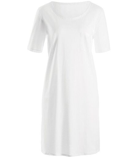 Damen Nachthemd aus glattem Jersey Rundhalsausschnitt Kurzarm Farbe: Weiss Brusttasche Gerade Schnittführung Material: 100% Baumwolle ...
