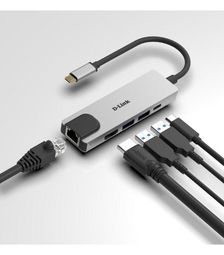 D-Link 5-In-1 USB-C Hub mit HDMI/Ethernet und USB-C Thunderbolt 3 Dockingstation DUB-M520