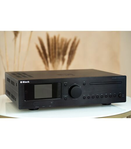 Block CVR-200 AV – Ihr Heimkinozentrum in 7.1Der Block CVR-200 AV ist ein audiovisueller Alleskönner für das moderne Wohnzimmer. Als vollwertiger 7.1 AV Blu-ray Internet-Receiver bietet er nicht nur erstklassige Audioleistung mit 7 x 100 Watt, sondern auch umfassende Streaming- und Videofunktionen – vereint in einem einzigen, edlen Gerät. Ob als Herzstück Ihrer Heimkinoanlage oder als vielseitiger Medienserver: Der CVR-200 AV liefert Spitzenleistung für Film- und Musikliebhaber. Die technischen Daten auf einen Blick:Verstärkerleistung: 7x 100 Watt RMS @ 4 OhmKanalunterstützung: 7.1 5.1 3.1 2.1 2.0Blu-ray/CD/DVD-Laufwerk: Blu-ray, DVD, HDCD, CD-R, CD-RW, MP3Streamingdienste: Spotify® Connect, DeezerEmpfangstechnologien: Internetradio (30.000+ Sender), DAB+, UKWWireless: WLAN (2,4 & 5 GHz), Bluetooth (Empfänger & Sender)Audio-/Videoformate (USB Rückseite): AAC, FLAC (192 kHz/32 Bit), MP3, MPEG4, H.264, MKV, JPG, PNG u.v.m.TV-Anschlüsse: 3x TV In (HDMI 1.4), ARCAud... ...