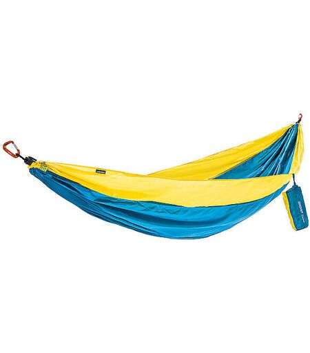Großzügig geschnittene Hängematte für zwei Personen aus weichem und starkem 70 Denier Diamond Ripstop Nylon. Details: Mit super-starken Vierfachnähten. Zwei 12 KN Aluminium-Karabiner im Packsack inkludiert. Straps nicht im Lieferumfang enthalten Maximale Belastbarkeit: 180 kg Gewicht ohne Karabiner (40 g) und Packsack (10 g) Packsack mit Quetschfalte zum einfacheren Verpacken. Packsack kann auch als Flaschenhalter verwendet werden. Zwei 12 KN Aluminium-Karabiner werden mitgeliefert. Maße: 285 x 190 cm Gewicht: 430 g Packmaß: 21 x 9 cm Farbbezeichnung: Island Green Warnhinweise: Folgen Sie diesen Sicherheitshinweisen, um Verletzungen zu vermeiden! Die Verwendung der Hängematte erfolgt grundsätzlich auf eigene Gefahr! Überprüfen Sie die Hängematte, Hammock Straps und Karabiner vor jedem Gebrauch. Sollten die Hängematte oder das Aufhängesystem in irgendeiner Weise beschädigt sein, verwenden Sie die Hängematte nicht! Dauerhafte UV Bestrahlung und Sonnenlicht können die Hängematte beschädigen. Ausgebleichte und brüchige Hängematten können reißen! Hängen Sie die Hängematte nie höher als 30 cm über dem Boden auf. Stellen Sie sicher, dass der Boden unter der Hängematte frei von spitzen oder harten Gegenständen (wie z. B. Steinen, Wurzeln oder Unrat) ist. Überschreiten Sie die Belastbarkeit (180 kg) Ihrer Hängematte nie. Springen Sie nicht in die Hängematte und schauckeln Sie nicht übermäßig. Vermeiden Sie den Kontakt der Hängematte mit entzündlichen Stoffen, Schuhen und spitzen Gegenständen, wie z. B. Schlüsseln oder Messern. Lassen Sie Kinder niemals unbeaufsichtigt in der Hängematte. Hängen Sie Hängematten niemals übereinander. Maximale Belastbarkeit: 180 kg ...
