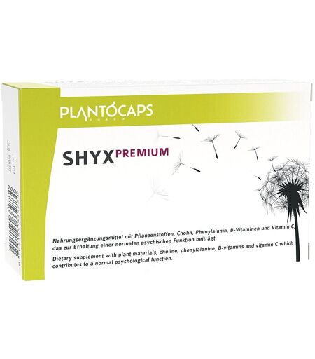 Anwendungsgebiet von Shyx Premium KapselnShyx Premium Kapseln ist ein Nahrungsergänzungsmittel. Das enthaltene Vitamin C und Niacin können Müdigkeit und Ermüdung verringern und zu einer normalen psychischen Funktion sowie einer normalen Funktion des Nervensystems beitragen. Vitamin M (Folat) trägt zur normalen Funktion des Immunsystems bei. Wirkstoffe / Inhaltsstoffe / ZutatenShyx Premium Kapseln enthält: Hydroxypropylmethylcellulose (Kapselhülle), Calciumascorbat, Ginkgo Extrakt, Rhodiola Rosea Extrakt, Passionsblumen Extrakt, Curcuma Extrakt, Ginseng Extrakt, Hericium Extrakt, Füllstoff: Cellulosepulver, Cholinhydrogentartrat, Griffonia Extrakt, DL-Phenylalanin, Nicotinamid, Pyridoxinhydrochlorid, Folsäure Pulver Shyx Premium Kapseln ist vegan, vegetarisch, laktose- und glutenfrei. Zusammensetzung pro Tagesdosis (2 Kapseln): Vitamin C 80 mg (100%*) Niacin 5 mg (30%*) Ginkgo extract 100 mg ** Passionsblume 100 mg** Rhodiola rosea extract 100 mg** Ginseng extract 50 mg** Hericium extract 50 mg** Folsäure196 mcg (98%*) Curcuma extract 60 mg** Griffonia extract 20 mg** DL-Phenylalanin 20 mg** Cholin 10 mg** Vitamin B6 246 mg (17%*) * Prozentualer Anteil der Nährstoffbezugswerte ** Keine Nährstoffbezugswerte für diese Stoffe GegenanzeigenBei bekannter Überempfindlichkeit gegenüber einem der oben genannten Inhaltsstoffe sollte dieses Produkt nicht angewendet werden. DosierungVerzehrempfehlung von Shyx Premium Kapseln: 2-mal täglich 1 Kapsel unzerkaut nach dem Essen mit etwas Flüssigkeit einnehmen. Die angegebene empfohlene tägliche Verzehrmenge darf nicht überschritten werden. HinweiseNahrungsergänzungsmittel sind kein Ersatz für eine ausgewogene und abwechslungsreiche Ernährung. Shyx Premium Kapseln sollten außerhalb der Reichweite von Kindern aufbewahrt werden. Die täglich empfohlene Verzehrmenge sollte nicht überschri ...